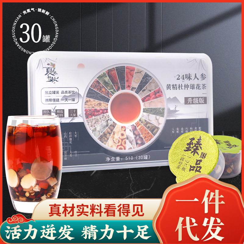 关键词:24味人参黄精杜仲雄花茶人参黄精枸杞桑椹黑芝麻覆盆子茶510升级,供应,奶|豆|茶,茶叶类,保健茶