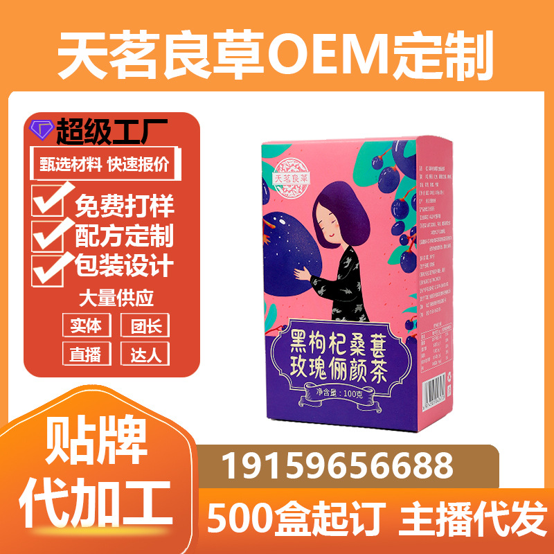 定制贴牌 黑枸杞桑葚玫瑰俪颜茶同款 抖快社群pdd分销代发