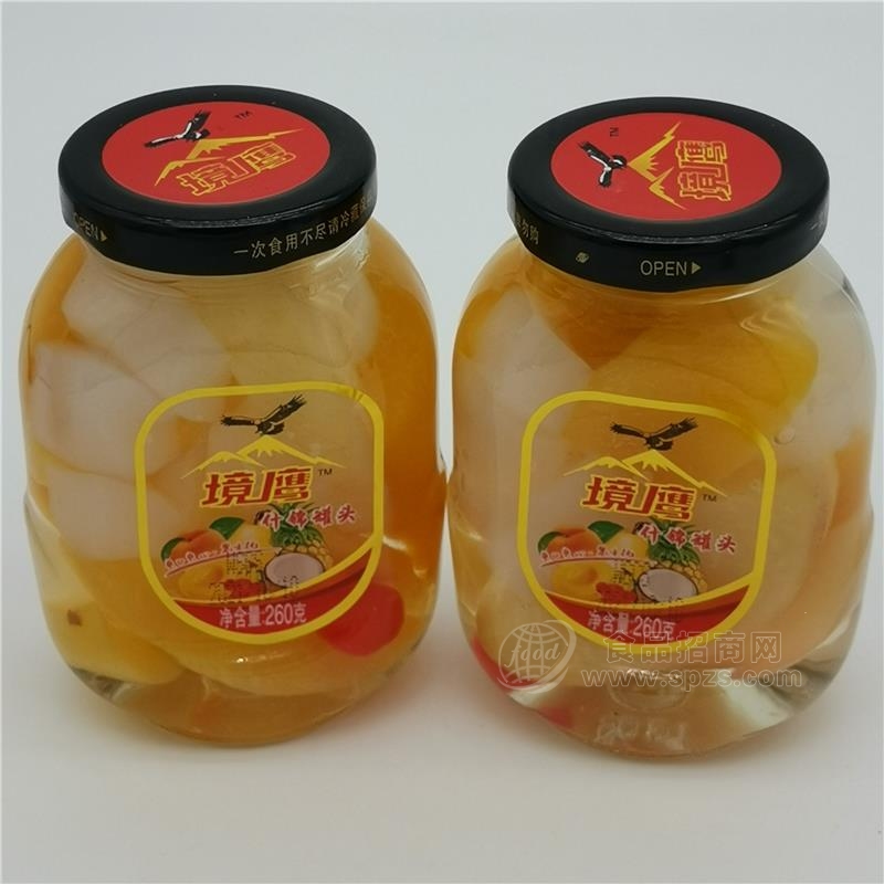 境鹰什锦罐头260克*10瓶是由山西境鹰食品有限公司生产,是瓜果罐头知名品牌,山西境鹰食品有限公司采用国内外先进的工艺加工技术,并经专家精心调制生产;境鹰什锦罐头260克*10瓶营养丰富适合中国人体质和饮食习惯,现面向全国各地诚招代理商。