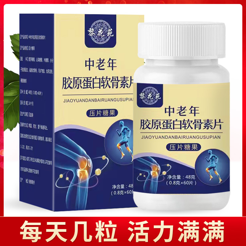 黎花苑中老年胶原蛋白软骨素片骨胶原蛋白钙片无糖型压片糖果批发