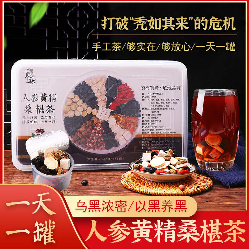 关键词:小罐人参黄精桑葚茶乌根益生茶桑葚黑发茶养生茶叶17克*30罐/盒,供应,奶|豆|茶,茶叶类,保健茶