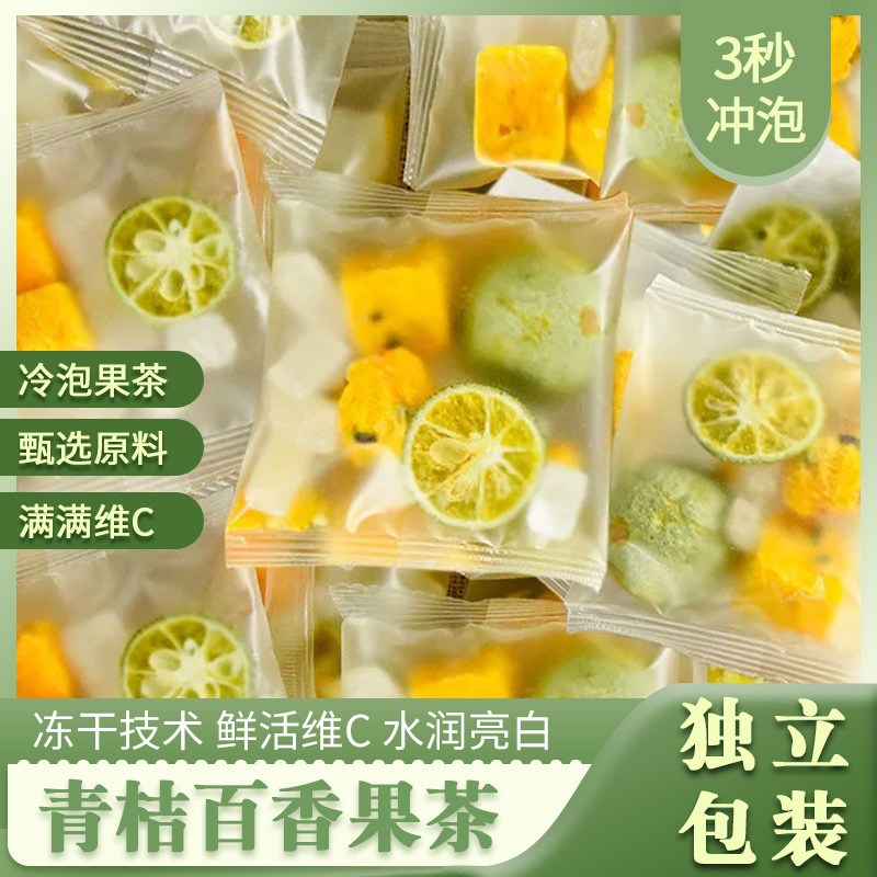 当前位置:首页>>供应>>奶|豆|茶>>茶叶类>>保健茶>>青桔百香果茶独立包装水果片蜂蜜冻干柠檬片冷泡茶夏季金桔水果茶