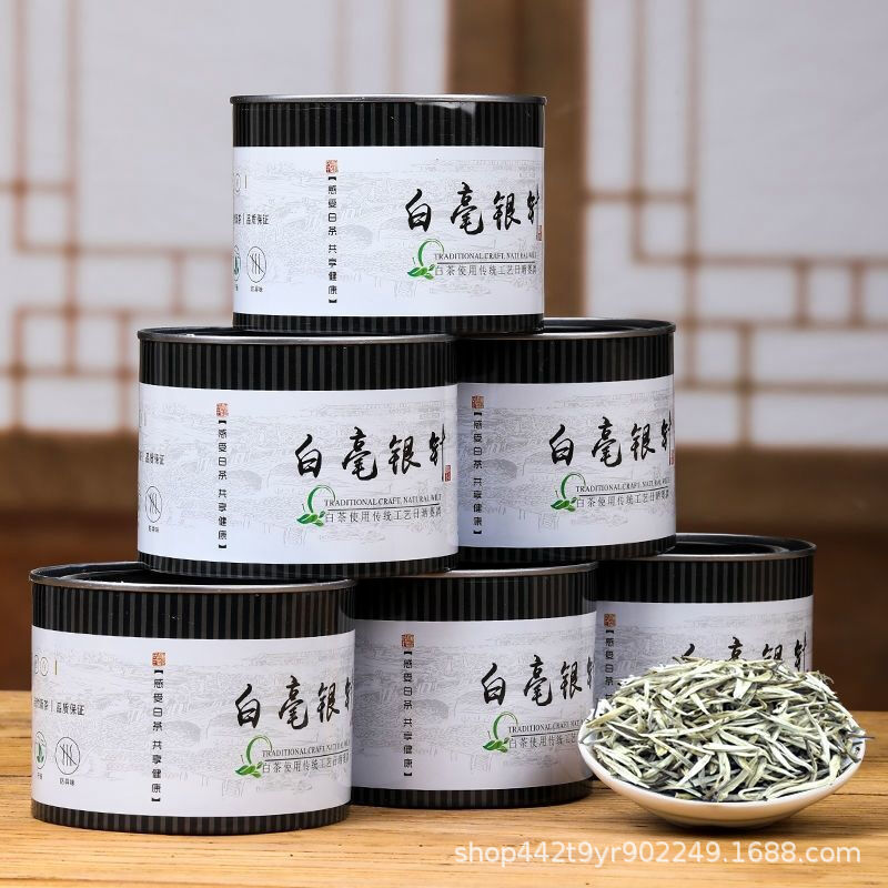 白毫银针茶叶荒野白茶春茶花香银针散装50g/罐装政和白茶批发代发