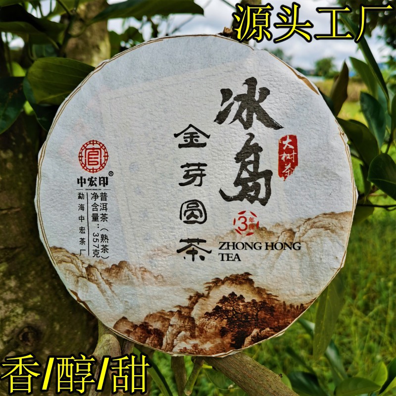 冰岛金芽熟饼 普洱熟茶云南金芽宫廷七子饼 乔木大叶种普洱茶