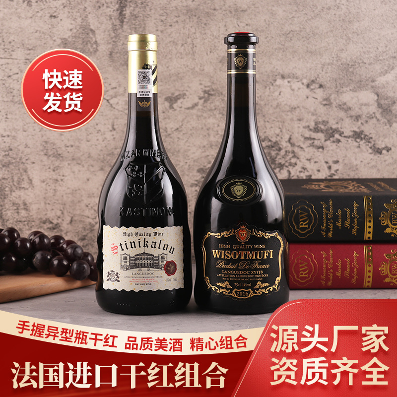 法国进口干红葡萄酒 AOP级别 手握异形瓶 源头厂家 一件代发 红酒