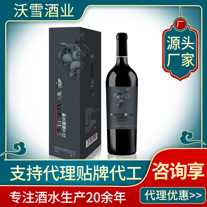定制蓝莓干红酒水果酒冰酒蓝莓酒低度甜酒红酒礼盒加工贴牌厂家
