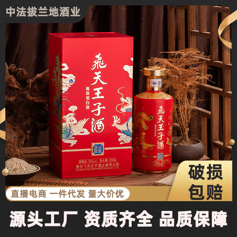 当前位置:首页>>供应>>酒水饮料>>>>白酒>>厂家批发一件代发贵州匠心珍品纯粮食酿造飞天王子53度酱香型白酒