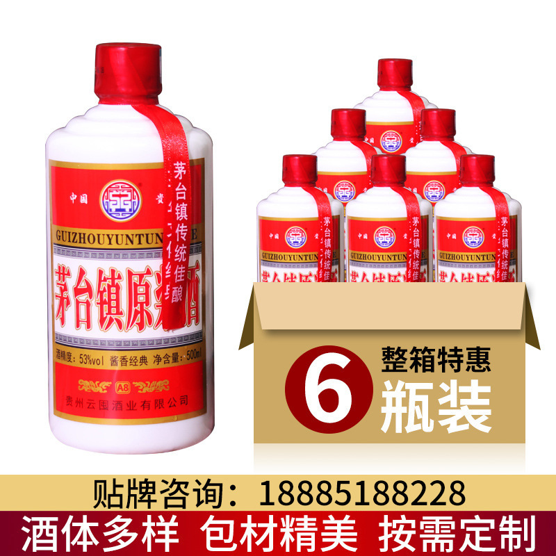 当前位置:首页>>供应>>酒水饮料>>>>白酒>>【找工厂】贵州茅台镇自饮52度酱香型粮食高粱酒6*500ml白酒整箱