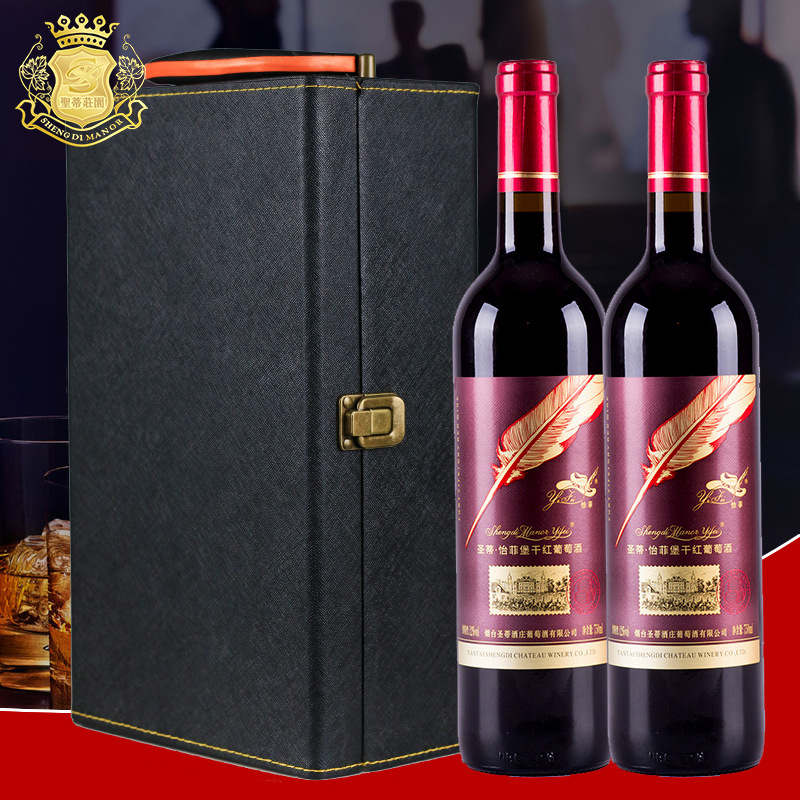 圣蒂双支红酒礼盒干红葡萄酒礼盒包装烟台红酒厂家招商批发
