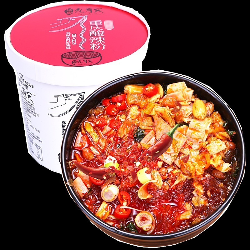关键词:华夏九月天重庆酸辣粉方便粉丝速食八大料包6桶/整箱装网红,供应,零食,方便食品,方便面