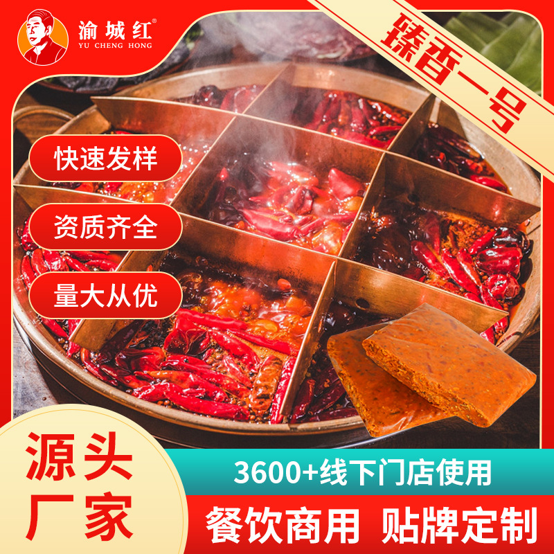 当前位置:首页>>供应>>干鲜调味>>调味品>>火锅汤料>>厂家定制麻辣火锅调料500g臻香1号牛油火锅底料餐饮连锁商用包装