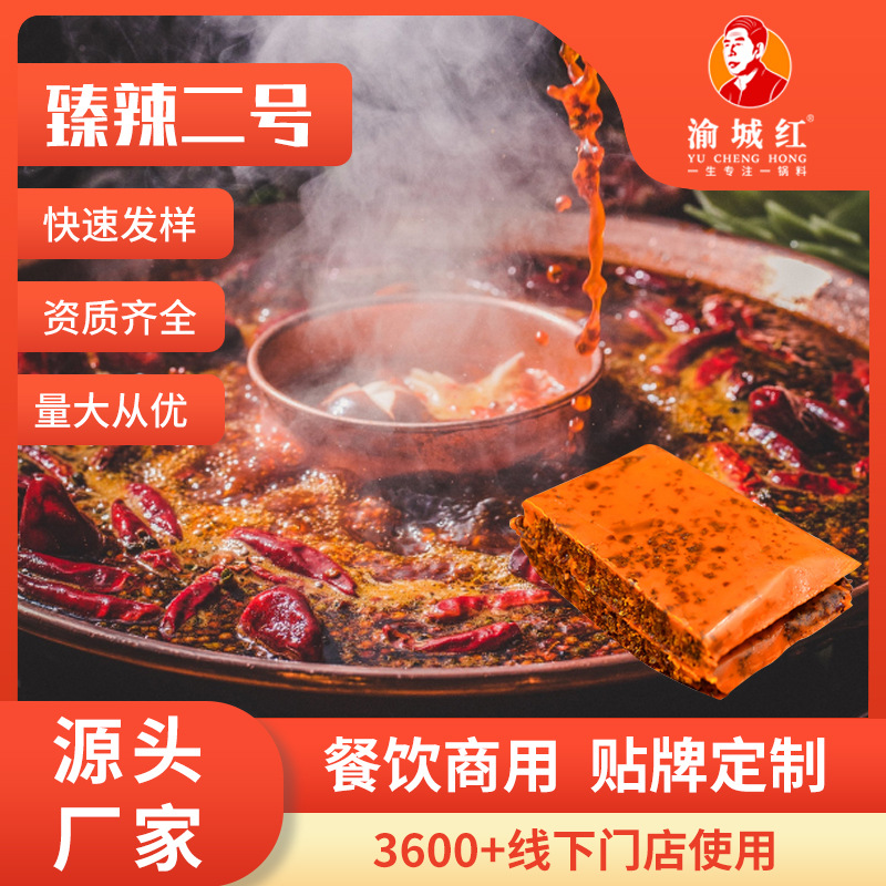 厂家定制500g臻辣2号牛油火锅底料商用包装麻辣火锅调料OEM定制