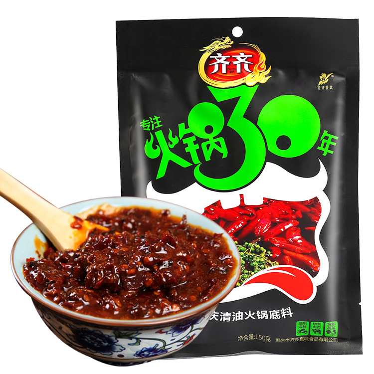 当前位置:首页>>供应>>干鲜调味>>调味品>>火锅汤料>>贴牌定做经典重庆齐齐清油火锅底料150g四川麻辣烫麻辣香锅调料