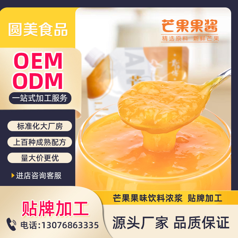 贴牌加工 芒果果酱1kg面包吐司果酱含果粒果肉烘培甜点奶茶店专用
