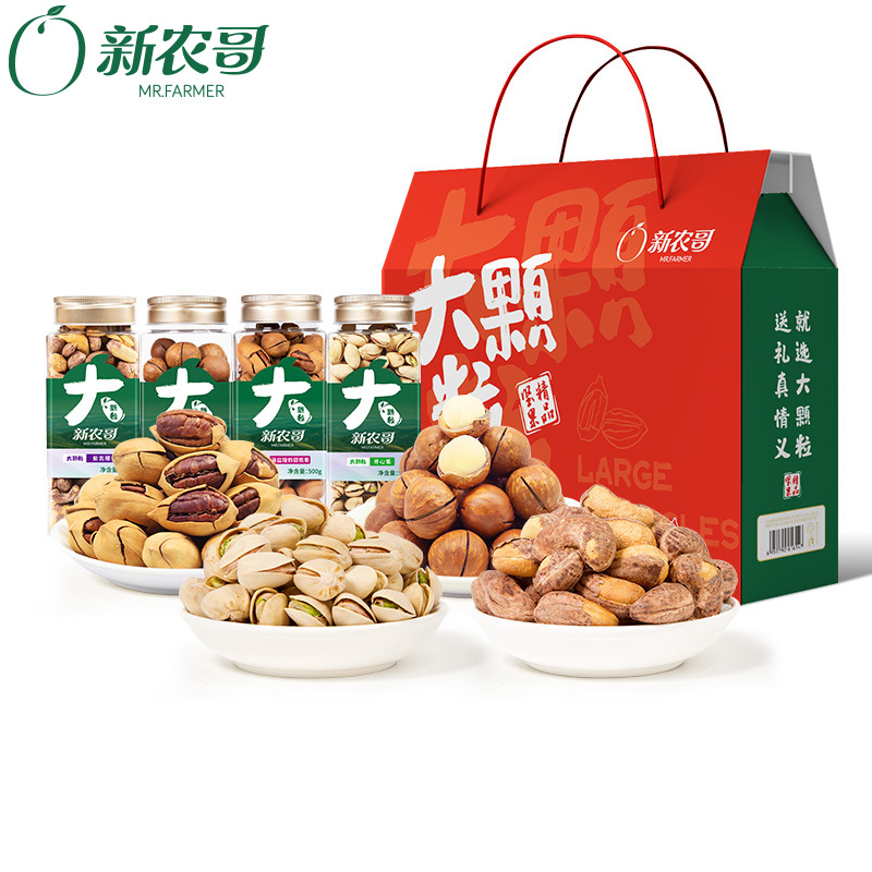 当前位置:首页>>供应>>零食>>休闲食品>>腰果>>新农哥新年坚果礼盒2000g纸皮核桃夏威夷果大颗粒方罐大礼包整箱