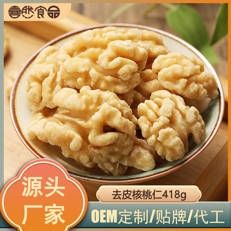 坚果炒货OEM代加工原味去皮核桃仁休闲零食贴牌定制logo礼盒418g