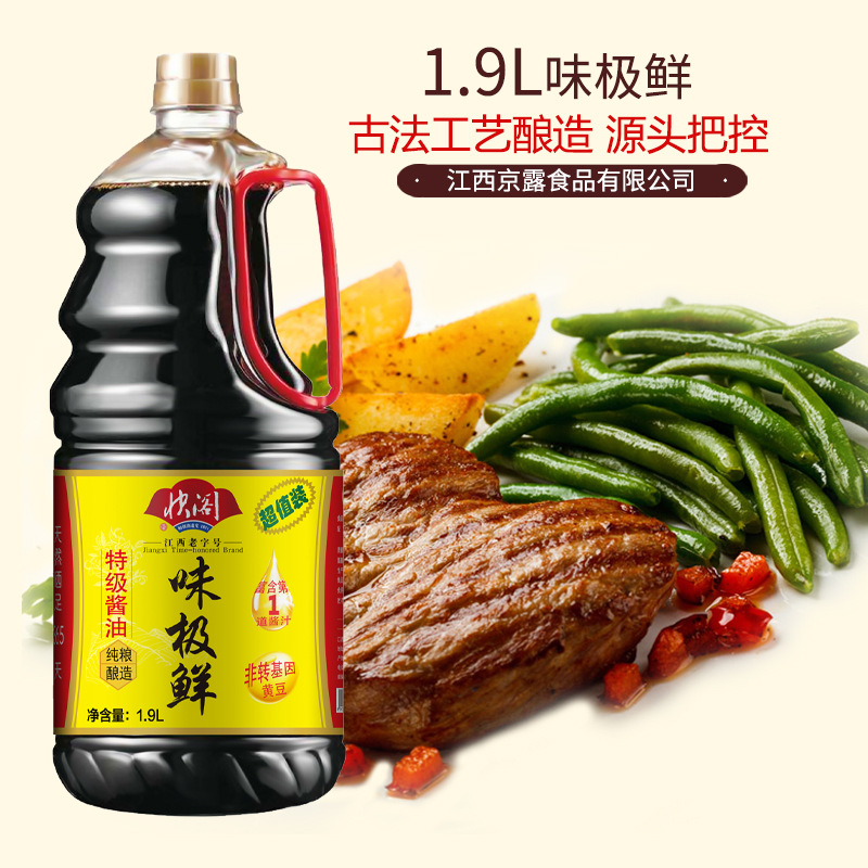 关键词:厂家批发鲜味酱油1.9L味极鲜火锅小炒闷煮点蘸调味家用商超餐饮,供应,干鲜调味