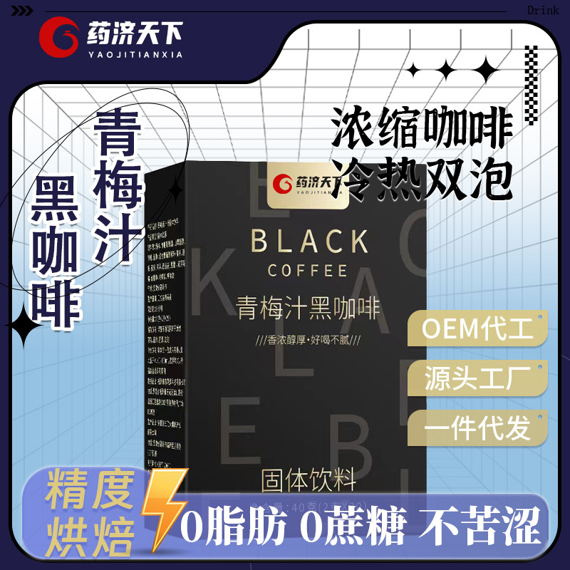 源头厂家 青梅汁黑咖啡浓缩黑咖啡速溶健身咖啡代发批发量大优惠