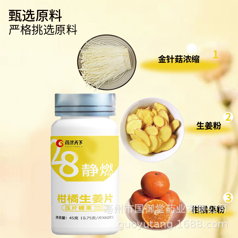 多维柑橘生姜片柑橘多酚片膳食纤维生姜油微囊糖姜片静燃嗨吃批发