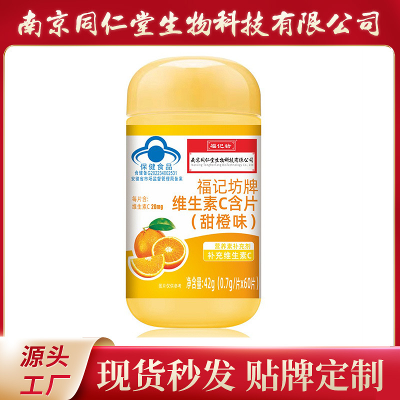南京同仁堂维生素C含片(甜橙味)补充剂VC蓝帽源头厂家直发