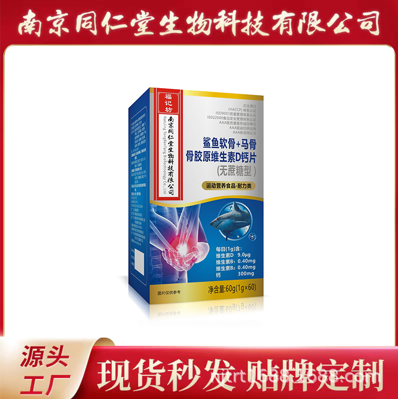南京同仁堂鲨鱼软骨+马骨骨胶原维生素D钙片60粒现货批发代发