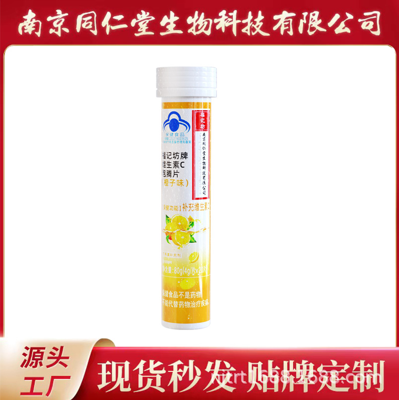 南京同仁堂维生素C泡腾片橙子味维生素20片源头工厂现货批发代发