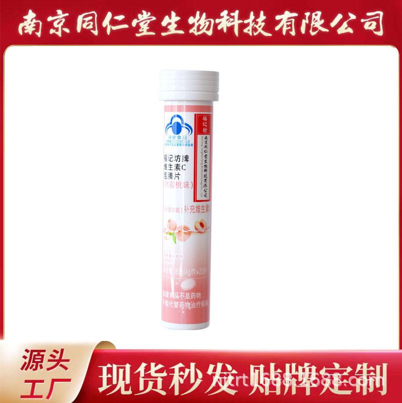 南京同仁堂维生素C泡腾片水蜜桃味维生素20片工厂现货批发代发