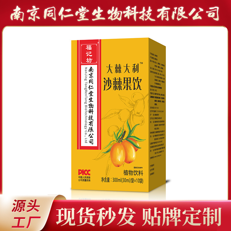 南京同仁堂大棘大利沙棘果饮300ml盒装植物饮料源头厂家批发代发