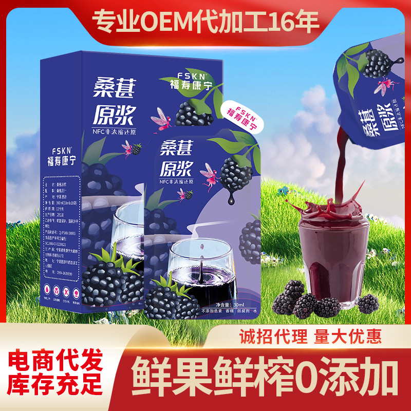 当前位置:首页>>供应>>保健食品>>保健食品>>桑葚原浆汁桑葚纯原浆300ml(30ml*10袋)代发全国招商