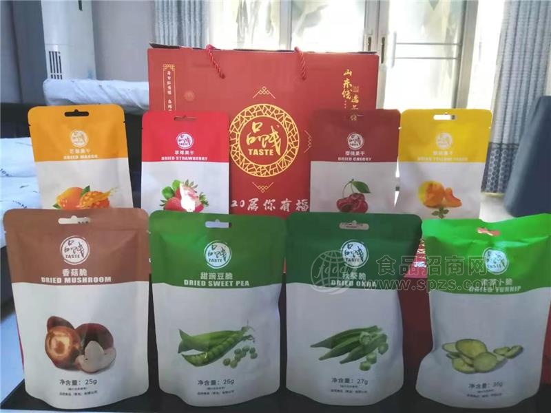 我们的产品全部由烟台地区知名品牌果干加工企业代工生产,产品质量有保障。同时,我们为了做市场,价格比同类产品低至少20%,市场前景和空间广阔。我们精选了市面上畅销的8种产品,包括果干类:芒果,草莓,樱桃,黄桃,果蔬脆:香菇,秋葵,青萝卜,豌豆。