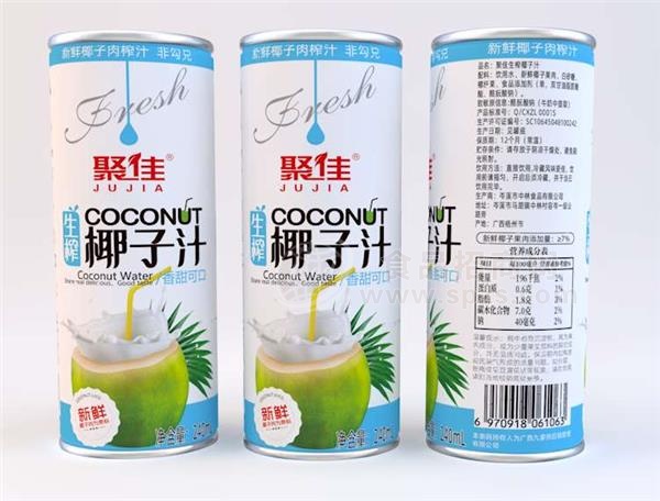 品名:聚佳椰子汁规格:240ml✘15罐相关的专题推荐:椰子汁,火锅食材,蚝油,饸饹面,光瓶酒。 对代理商的要求:1、聚佳椰子汁经销商必须有经营销售能力。2、具有植物蛋白饮料渠道产品销售资源和操作经验。3、具有进货资金和销售渠道。 可提供支持:1、公司承诺严格的区域保护政策。2、产品低价进货,保证经销商赚钱。3、厂家有专门的广告宣传媒体渠道,帮助经销商开拓市场4、传统节日,法定节假日进行促销活动的支持。