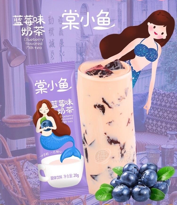 1、棠小鱼奶茶 蓝莓味袋装挂件奶茶 十连包固体饮料冲调奶茶新品招商20g经销商必须有经营销售能力。