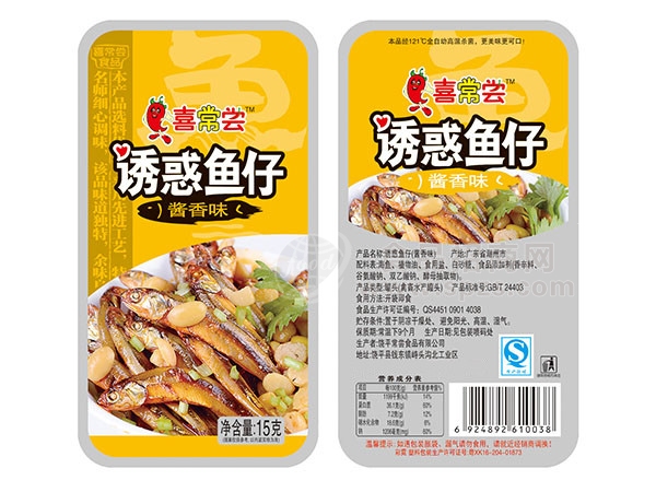 诱惑鱼仔-酱香味_副本是由饶平常尝食品有限公司经营的鱼干鱼丝系列产品,诱惑鱼仔-酱香味_副本契合广大消费者需求,口味纯正,赋予您丰富的营养和口感。公司始终坚持以健康的产品,过硬的质量,贴心的服务,合理的价格和秉承双赢的经营理念,现面向全国诚招代理商,欢迎来电咨询!
