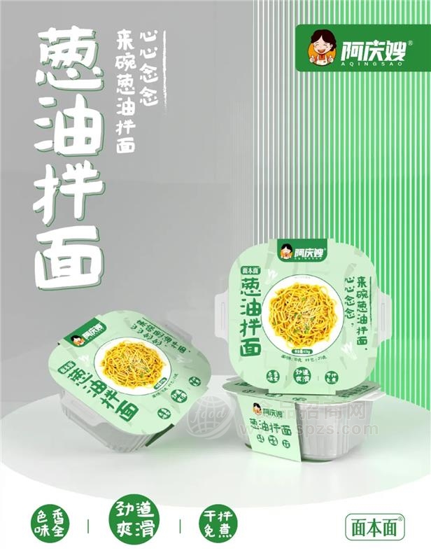 葱油拌面作为遍及全国的小吃,有着极大的赏味群体。阿庆嫂葱油拌面为清汤面,加入特制的葱油调料,复刻街边小店正宗美味。爽滑筋道的细面撒上小葱粒,好吃无以复加,让人回购再回购。