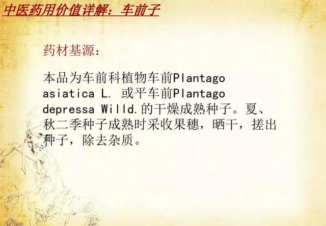 车前子入汤剂一般生用,入丸一般炒制,例如五子衍宗,注意病证与药性是否相符,临床上,中医很少单独使用车前,多与其他药物配伍使用。