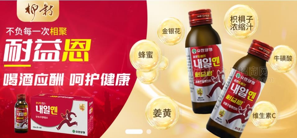 耐益恩枳椇子植物饮料由柳新(青岛)健康有限公司推出,公司由韩国代表性百年制药企业柳韩洋行和山东省骨干民营企业新华锦集团于2019年合资成立。两者投资建设青岛世福兰斯医院,在大健康产业领域拥有较强的实力,为解酒饮品研发生产提供坚实的后盾。