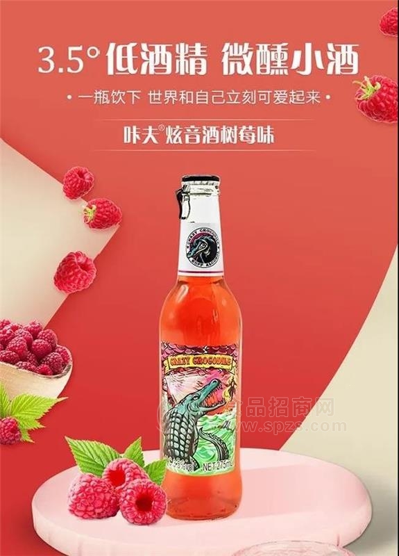 咔夫炫音酒275ml小瓶装,酒精度3.5%,口感清新,十分畅快! 复古质感的酒标、大胆靓丽的色彩和战斗的鳄鱼图案都彰显了年轻人的个性、活力,这样更能牵引他们的情绪,极大地促进了购买。