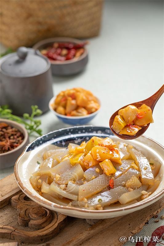 (乌江榨菜全球热销150亿包)古今同赏,上至皇宫下至民家的至味清欢青菜头,其实是芥菜的一种,由青菜头制成的榨菜,更是将青菜头的口感和营养发挥到极点,鲜脆爽口、开味又健康。