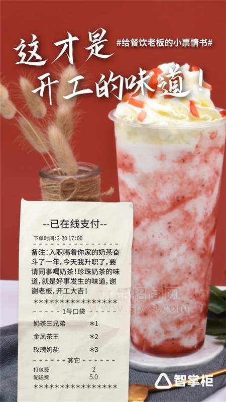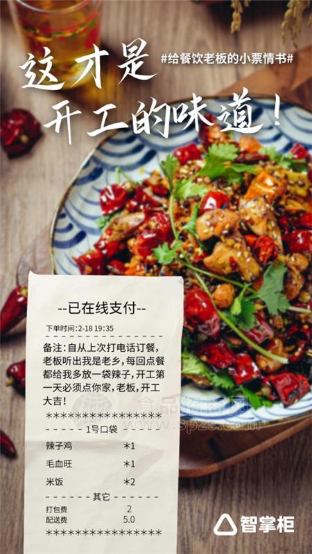 餐馆行业陆续进入复工状态,作为城市的独特的“烟火气”,餐饮行业的复工状态也成为城市春节后各行的奋斗缩影。后疫 情 时代的行业思考加上春节后大量异乡务工人员的涌入,让餐饮行业的数字化进程快速推动。“回乡潮”在大江南北温暖涌动的同时,部分打工人和饭馆老板选择“就地过年”,一种奇妙又浪漫的情 感联结便开始萌芽生长。冬季飞雪漫漫,但无人偶遇孤单。餐饮界复工点燃城市烟火气,“小票情 书”暖心房大年三十,在二线城市经营烧烤店的老板娘王女士和轮班的服务人员像往常一样忙碌奔走在上下两层的楼梯间,年三十在家里吃年夜饭的人总少不了来点烧烤看看电视,而到店里围坐一桌觥筹交错共度佳节的客人也不少。看着别人拖家带口酒足饭饱好不热闹,她心底闪过一丝落寞,暗暗给自己打气,赚够今晚这几单,明儿个初一一定早早回家跟家里人过大年!“叮呤~您收到了新的订单,请及时配送。”新的外卖订单打断了甜甜的思绪,连忙用抹布擦净双手查看订单。“.......辣子鸡、毛血旺......还有......嗯?”王女士打开智掌柜智能服务系统自动核对,突然发现备注那里,是一段无关点餐的长文字:“自从上次打电话订餐,老板听出我是老乡,每回点餐都给我多放一袋辣子,新年第1天必须点你家,老板,开业大吉!”与此同时,在西安老城区经营奶茶店的李老板也在冬日收到了一封类似的“小票情 书”:“入职喝着你家的奶茶奋斗了一年,今天我升职了,要请同事喝奶茶!珍珠奶茶的味道,就是好事发生的味道,谢谢老板,新年大吉!”温言暖语的柔软,搭配珍珠奶茶甜甜香香的独特气息,缠绕在李老板的鼻尖,沁在心里,手上的小纸条展开又叠好,看了又看,“也祝你新年快乐!”李老板轻轻地说道。“好的新年祝福,希望你也拥有”生活中,餐饮老板作为服务工作者,,鲜少有人关注到他们的心理诉求。无独有偶,“小票情 书”的流行,也让众多餐饮老板们恍然意识到,原来餐饮业开工的仪式感,不止来源于开业时候的炮,或者一个红包,更多时候,这种来自消费者的支持与食客们对于食物的鼓励,一封小小的“情 书”,也能激发老板们的无限动力和热血。良言一句三冬暖,老板们将一条条“特殊备注”对边折叠,然后整齐撕下来,小心收藏。感动之余,更仔细利用智能下单系统检查一遍,确认无误后,熟练地进入SaaS后台,查取了“来信”顾客的历史订单,经过查询,发现大多数都是“常客”。老板们利用智慧化应用,不仅能记住新老顾客的需求与爱好习惯,还可以适时提供老顾客返利活动,迅速拷贝客人的饮食消费习惯和忌口,加送一道小菜或者新品试吃,又或者是直接附送一张优惠券,并在配送员赶来前,将所有餐食装袋备好,一同放入的,还有一张画着笑脸的小纸条:“这是我收到好的新年祝福,希望给你的也是~”而智掌柜也在新年复工之际,第1时间募集到商户们收到的这些与众不同的“小票情 书”,并制作了一系列的精美海报,发给所有使用智掌柜并加入“关爱老板联盟”的餐饮老板们。这些温暖的祝福链接了食客与老板们的情 感,给餐饮老板们带来了别具一格的开年“礼物”,更是引发了餐饮行业内外的热论与媒体转发。