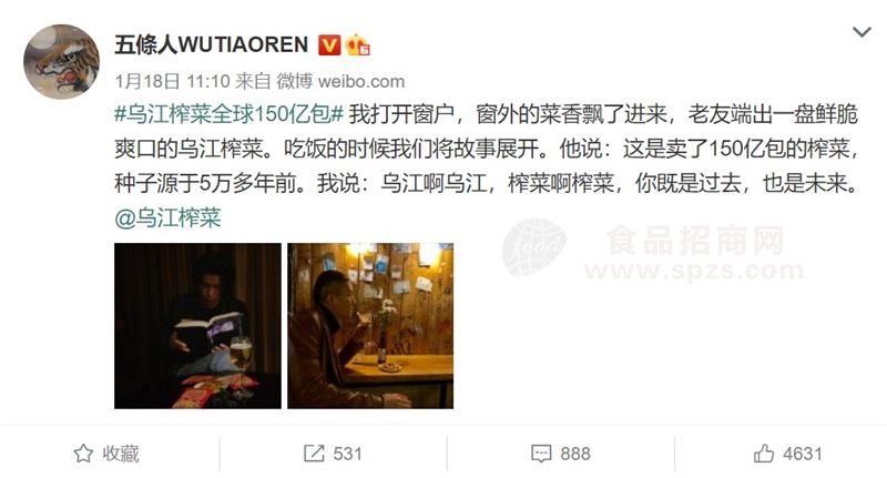 (黄雅莉微博)凡此种种,才有了各路名人追捧的盛况,全球热销150亿包的佳绩。每个环节讲究,把匠心融入到生产的点点滴滴,时间自然会成为乌江榨菜的朋友,使其一步步走向全球,走到更多人的餐桌上,走到更多人的心里。