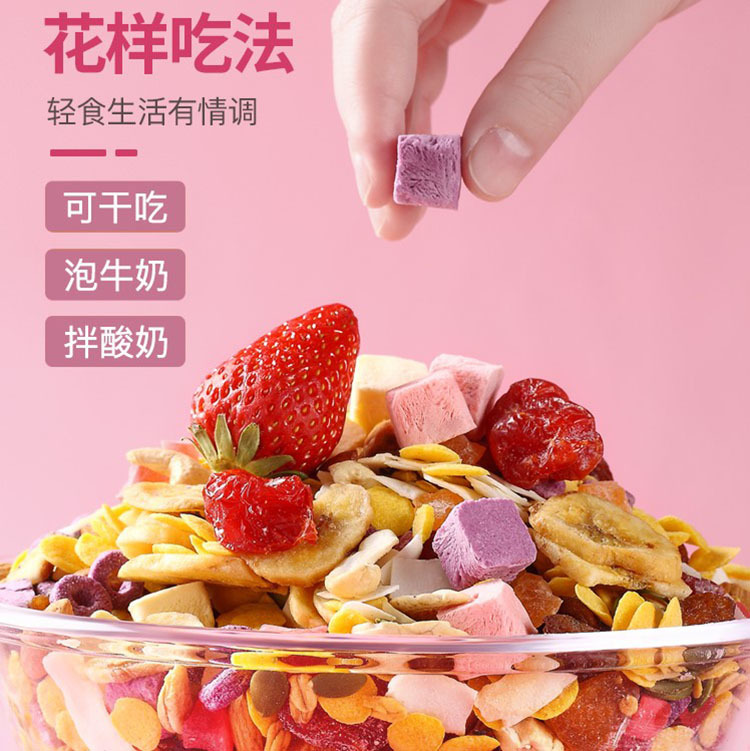 当前位置:首页>>供应>>零食>>休闲食品>>坚果>>酸奶果粒燕麦片水果250g净重袋装烘培燕麦可定制